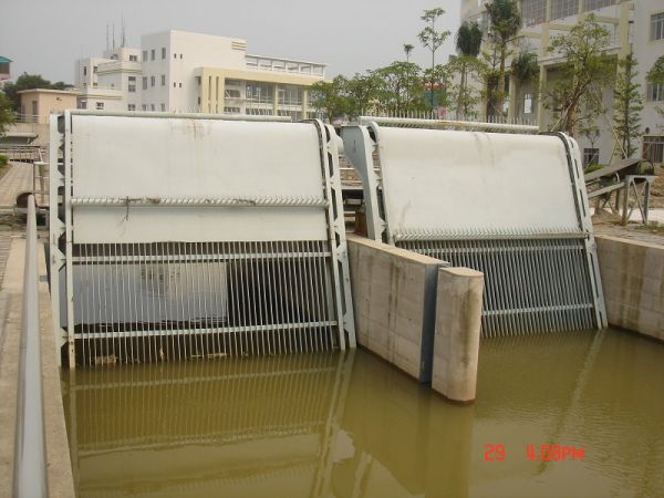 - HQN 型回转式格栅清污机固定安装在泵 站、水电站、污水雨水排放处、自来水取水处 等水工建筑物的进水口处,以拦污栅拦截水流 中所挟带的污飘浮物(树枝、树叶、杂草、生 活垃圾等),并通过回转的齿耙将其